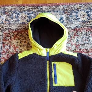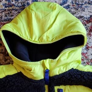 LAST ONE!! Stylish & Warm hood black sherpa with neon lime green nylon details