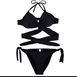 LAST ONE Women's Triangle Bikini top and bottom, Black X bikini, M