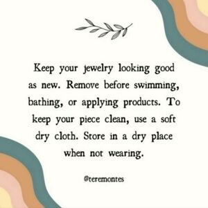 👉Keep your jewelry looking good as new. Remove before swimming, bathing, or applying products. To keep your piece clean, use a soft dry cloth. Store in a dry place when not wearing.