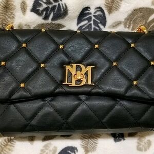 Badgley Mischka black diamond quilted crossbody with gold hardware and studs