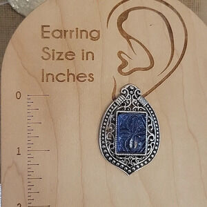 Intricate frames around large etched glass. Handcrafted. Hypoallergenic posts.
