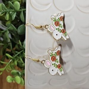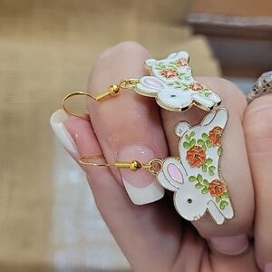 🔥LAST PAIR🔥 FLORAL WHIMSY Rabbit Charm Earrings, 925 wires