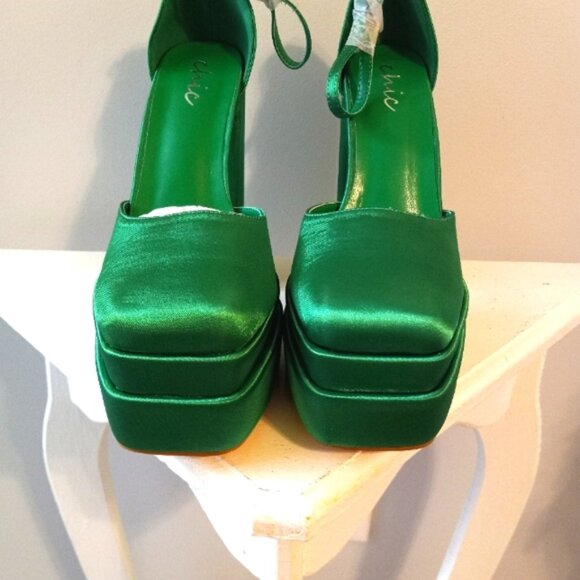 “LAST PAIR” Kelly Green Satin Platform Heels
