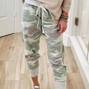 LAST PAIR! SIZE LARGE. Faddish camo print. Casual, chic sport style. Elastic waistband with tie. Side pockets. These are extremely comfortable and very very cute! I wear mine as pajamas and workout pants. Jogger style.