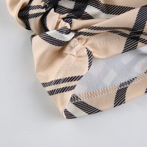 Be a total glamor girl in this super cute halter top! Featuring a gorgeous nude + black striped plaid broadcloth and sultry plunging V-neck. Keyhole slit. Ruched sides to add dimension to your look. Backless. Soak up some much deserved attention in this flirty printed crop top. ❤️