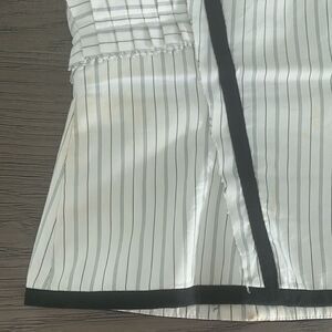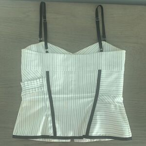 Beautiful cinching striped corset top to wear out or under a blazer. Hook closure down the front and adjustable straps. Please see photos for yellowing, have not taken to cleaners.