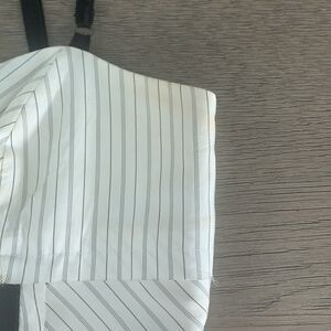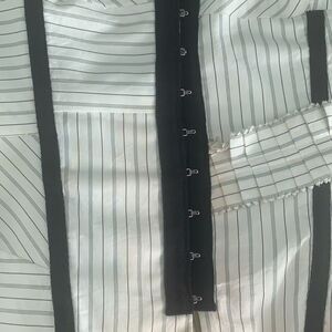 Beautiful cinching striped corset top to wear out or under a blazer. Hook closure down the front and adjustable straps. Please see photos for yellowing, have not taken to cleaners.
