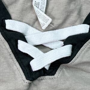 LAT Ladies Game Day Lace Up Short Sleeve Tee Shirt Size S Titanium White Black