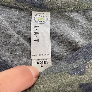 L.A.T Live And Tell Women's Green Camo Chaos Coordinator Graphic Tee Large