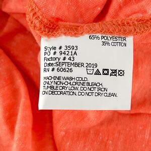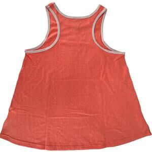 Women's relaxed racerback tank top in Papaya Melange with a white trim. The color is a little lighter than shown in photos. Size Ladies Small. 65% Polyester 35% Cotton. Machine wash cold, tumble dry low. Due to light & screen variations, colors may vary slightly from the images
