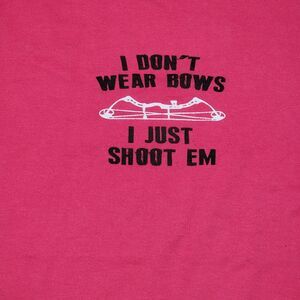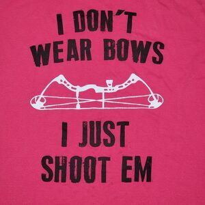 LAT SS Pink Tee " I Don't Wear Bows, I Just Shoot Them" - Size Large. Excellent condition. Comes from a smoke free home.