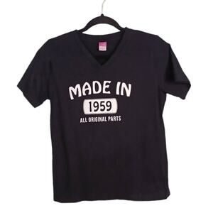 LAT Womens M Black White Graphic Tee T-Shirt "MADE IN 1959 All Original Parts"