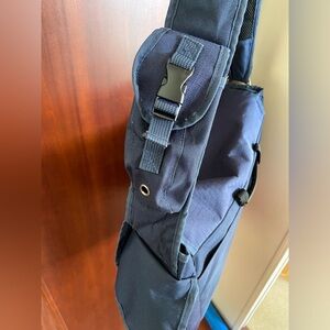 Very Rare Authentic LATE SHOW with David Letterman commemorative bag from 2006. 2500 shows! Embroidered logo on front and inside. This messenger bag showcases a vibrant navy blue and bright yellow color block design, featuring a durable fabric construction. The bag is equipped with a convenient flap closure and an padded adjustable shoulder strap with storage compartments for easy carrying. Its sporty aesthetic makes it ideal for casual outings and outdoor adventures.