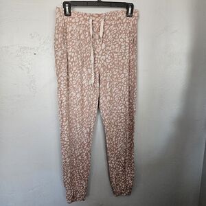 LATES by Kate Women's Medium Salmon Tan Pink Leopard Patterned Lounge Set PJs