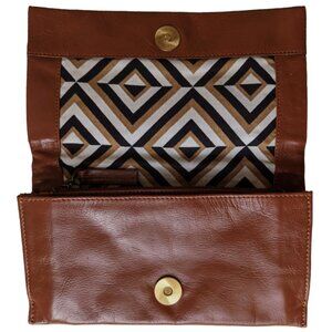 Latico envelope style wallet with a fold-over flap and snap closure.