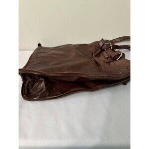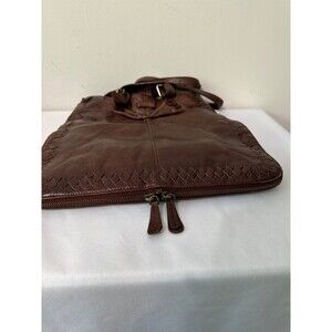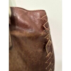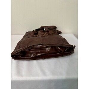 Hard to find LATICO expandable tote carryall bag. In supple dark brown leather with whipstich on sides. This bag is preloved, some minor staining on inside and out side has some worn areas and some of the side stitching need to be rewoven if desired. Top of strap has small treat at seam. It's a great bag, comfortable to wear and leather feels good.
