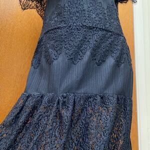 STUNNING dress from L'ATISTE by Amy, NEW WITH TAGS- This dress has layers / tiers to it, and has an off the shoulders top- the see through part starts about 14" past waist. I've included approximate measurements below. Romantic and gorgeous dress. The tag says this garment is WELL FITTING SIZE SMALL