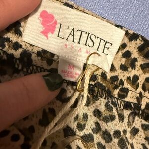 L’ATISTE Leopard Print Colorblock Long Skirt Medium