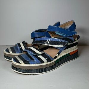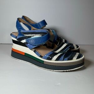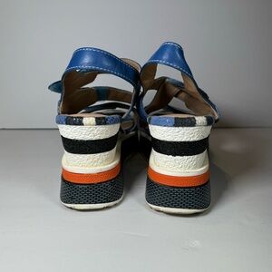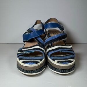 L’ATISTE Women’s Wedges Sandals EU 41 US 9.5 10 Blue White Boho Art to Wear