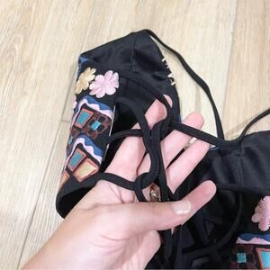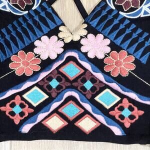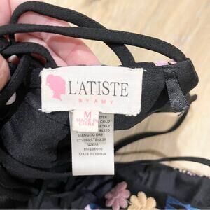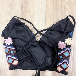 L'ATISTE by Amy Black Top with Colorful Embroidery Open Back size M