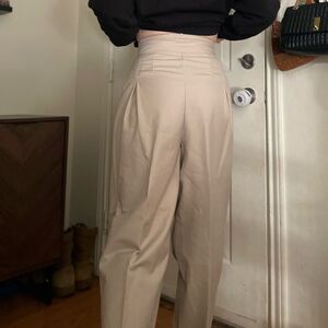 LATTELIER Super High Waisted Pleated Trouser Pants Small Beige