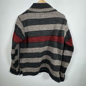 LAUNDROMAT Handcrafted Gray & Red Striped 100% Wool 1/4-Zip Pullover Sweater M