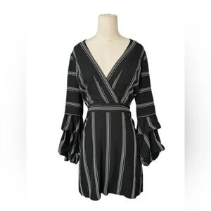 LAUNDRY BY SHELLI SEGAL DRESS v neck black & White pin stripes size 2