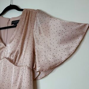 LAUNDRY BY SHELLI SEGAL Flutter Sleeve Satin Micro Polka Dot 20s Flapper Dress