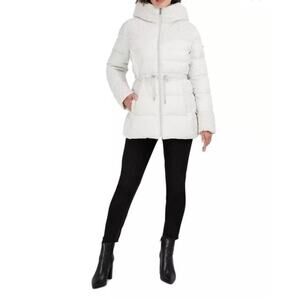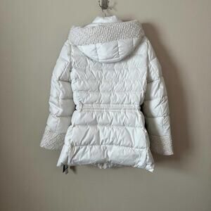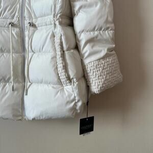 NWT Laundry by Shelli Segal Mixed-Media Anorak Hooded Puffer Coat Color: Cream Knitted detail Cinched Adjustable Waistband $300 MSRP Size Large (Fits true to size- ask for measurements if needed) This heavy coat is slimming and stylish, perfect for your cold weather activities! • Water-resistant finish • Stand collar • Long sleeves • Zip front closure • Occasion: cold weather, Fall walk, ski trip • Shell: 100% polyester combo: 100% polyester lining: 100% polyester filling: 100% polyester pocket bag (faux fur) • Machine wash
