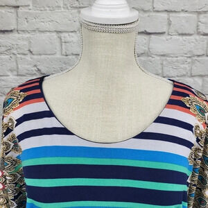 LAUNDRY BY SHELLI SEGAL Striped Peacock Belted Dress Sz XS