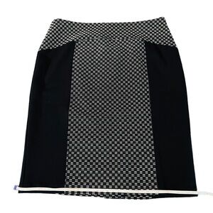 LAUNDRY BY SHELLI SEGAL WOMENS STRAIGHT CUT BLACK & WHITE MIDI SKIRT SIZE 8