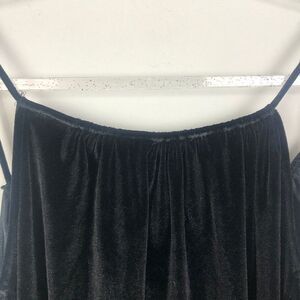Adorable black velvet blouse from Laundry by Shelli Segal. Off the shoulder (cold shoulder) design. Tie front peasant style. Wide bell sleeves. Great preowned condition. Size Large.