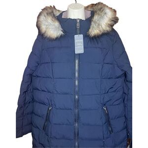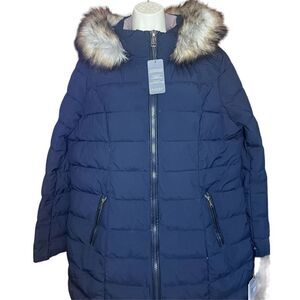 LAUNDRY BY SHELLI SEGAL Faux Fur Trim Cold Weather Parka Coat in Navy NWT Size X