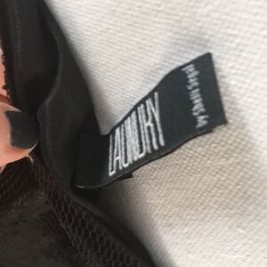 Laundry Black Lace Overlay Spaghetti Strap Cocktail Dress. Black 100% nylon w lining 100% polyester. Lace overlay dress w spaghetti straps. Falls right above the knee. Gently worn. No snaps or zippers. Waist approximately 15.5” depending on your height. Approx 36” from top of strap to bottom hem. Size 4.