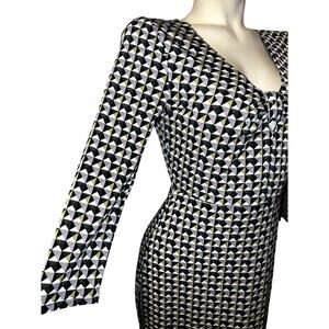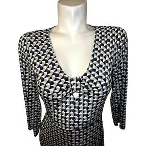 LAUNDRY By Design Dress Size 4 Multicolored Geometric Stretch Sheath Keyhole Cut