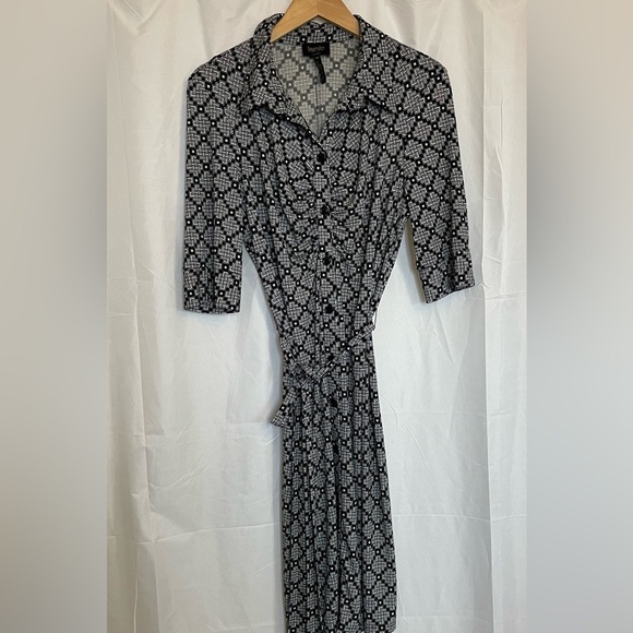 LAUNDRY By Shelli Segal Women’s Black White Button Down Midi Dress Size 14