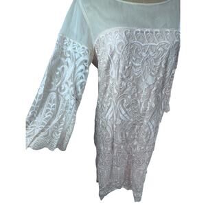 "LAUNDRY" Cream Lace Midi Dress SZ 10 Mesh Sunday Dress Wedding Formal Evening