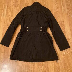 This coat is ultra light and combines function and chic city-style. Has plenty of functional pockets and is perfect for travel! Can be worn as an oversized coat for smaller sizes. In great condition with no visible flaws.