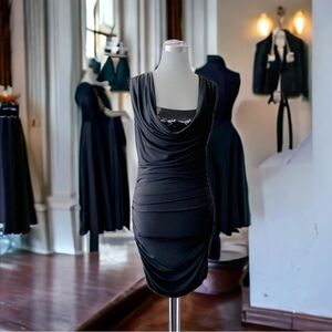 LAUNDRY by Design Black Cowl Neck Drape Dress Women's Lined Sequins Dress