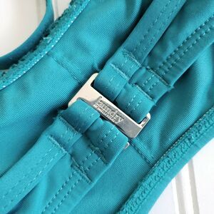 LAUNDRY by Design lace trim halter bralette bikini swim top enamel blue XL NEW