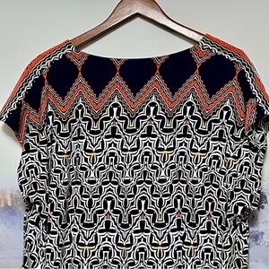 LAUNDRY by SHELLI SEGAL Aztec Shift Dress Size L Mandarin Red Multi Liquid Knit