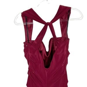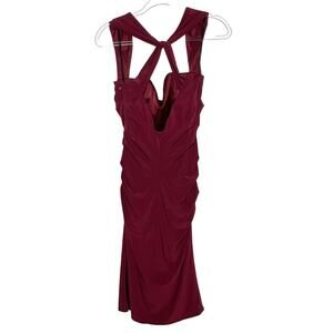 LAUNDRY by SHELLI SEGAL Halter Ruched Bodycon Dress Knee Length Burgundy Size 8