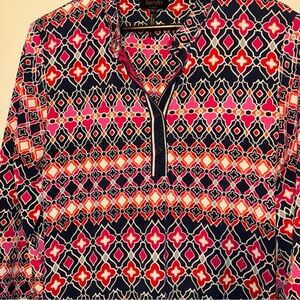 LAUNDRY by Shelli Segal Blue Pink Multi Print 3/4 Sleeve Sheath Dress Medium in good preowned condition