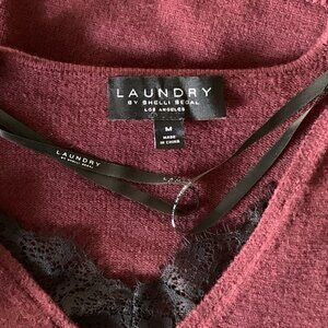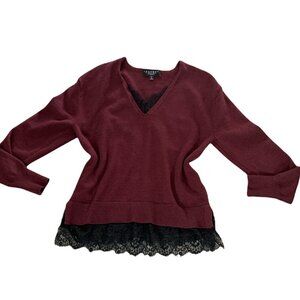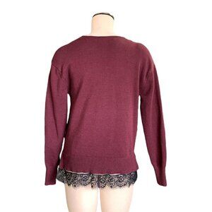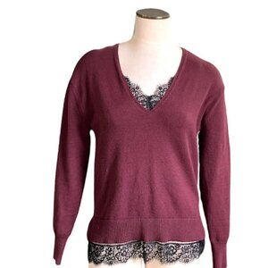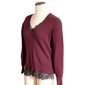 LAUNDRY by Shelli Segal Burgundy V-Neck Sweater Black Lace Trim Sz M #215B