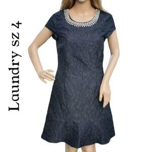 LAUNDRY BLACK JACQUARD EMBELLISHED DRESS sz 4