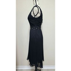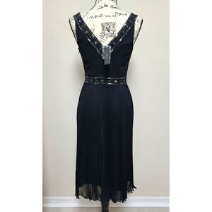 LAUNDRY BY SHELLI SEGAL Black Beaded V-Neck Pleated Dress NEW MSRP $340 SIZE 2