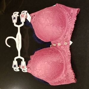 💕LAURA ASHLEY💕 2 Pack Bras ~ Pink & Blue Lace 36C NWT