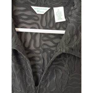 LAURA ASHLEY Black Jacket Top Semi Sheer Abstract Zip Up Blouse 1X Texture