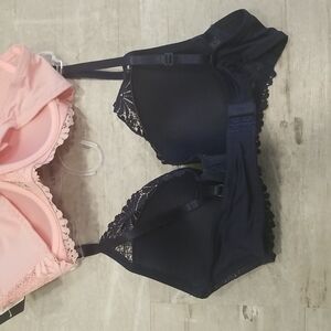 💕LAURA ASHLEY💕 Comfort Bras (2 Pack) Pink & Navy Blue Lace 36C *FLAWED