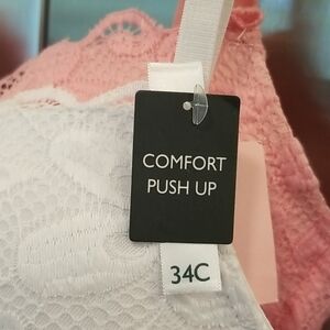 💕LAURA ASHLEY💕 Comfort Push Up Bras (2 Pack) Pink & White Lace 34C NWT